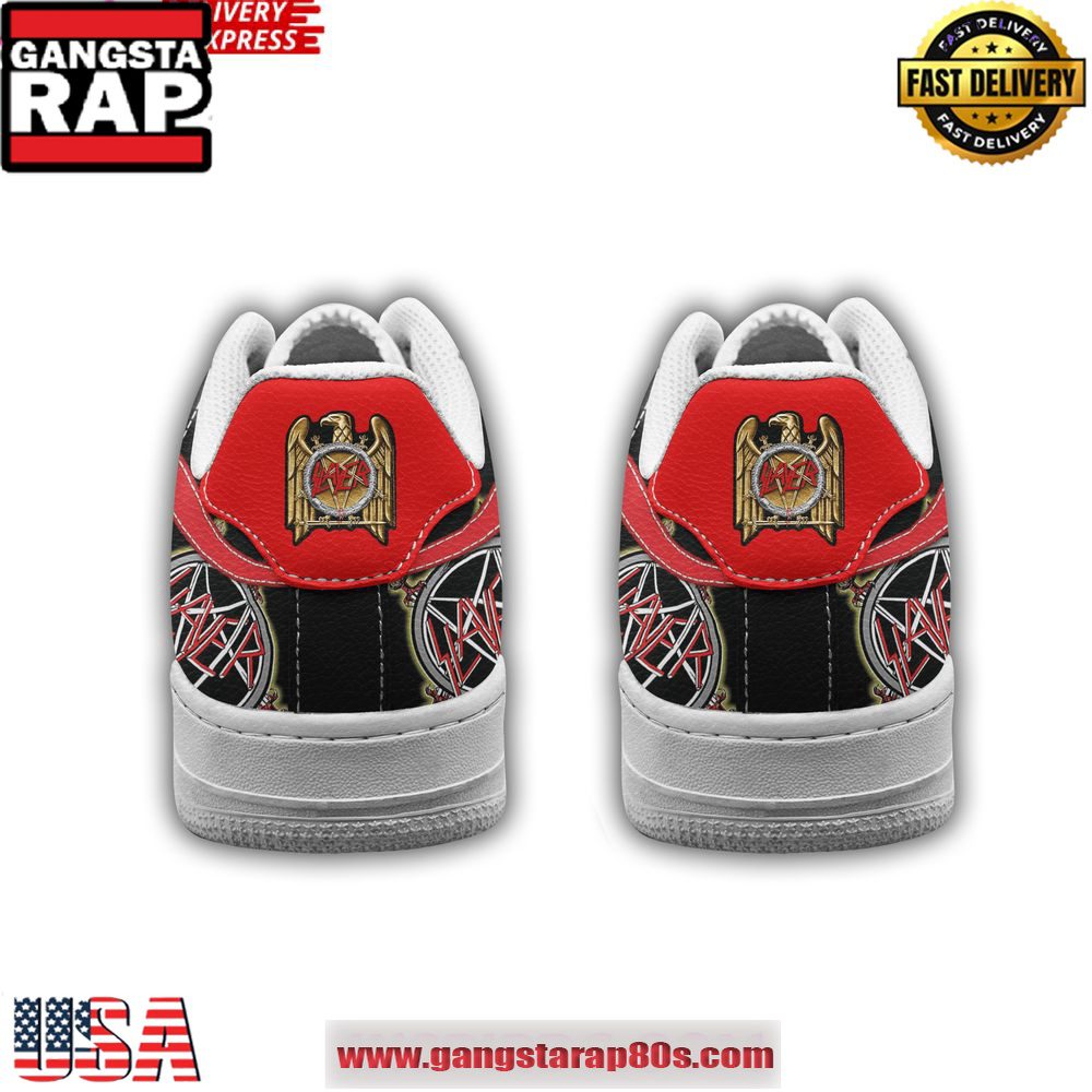 Introducing the highly coveted Slayer Angel of Death Limited Edition Air Force 1 Shoes, where iconic style meets ultimate performance. Distinguished by its bold design and exceptional craftsmanship, this pair of running sneakers offers a legendary experience for both sneaker enthusiasts and heavy metal fans alike. With the 2023 release, these exclusive sneakers pay homage to the classic Slayer aesthetic, seamlessly infusing their energy into a timeless footwear icon.