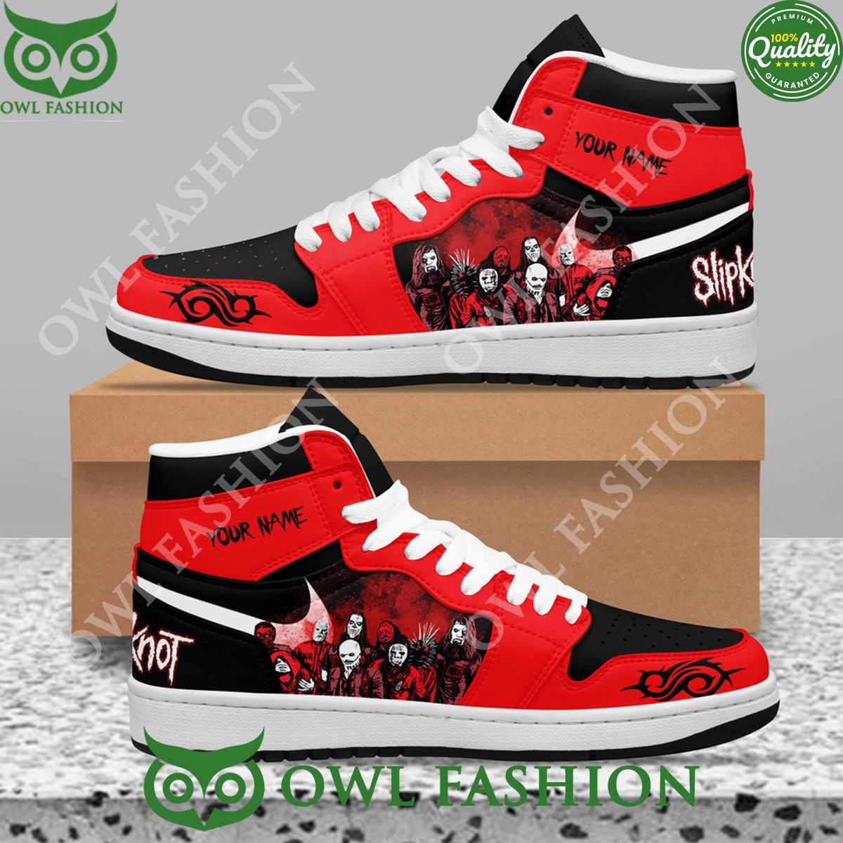 For fans of the heavy metal icons Slipknot, the Slipknot 1999 Horror Custom Name Air Jordan High Top Sneaker Boot is the ultimate expression of fandom and style. Combining the legendary design of Air Jordan with the haunting imagery of Slipknot’s early years, these sneakers are more than just footwear?they’re a statement of individuality and musical passion.