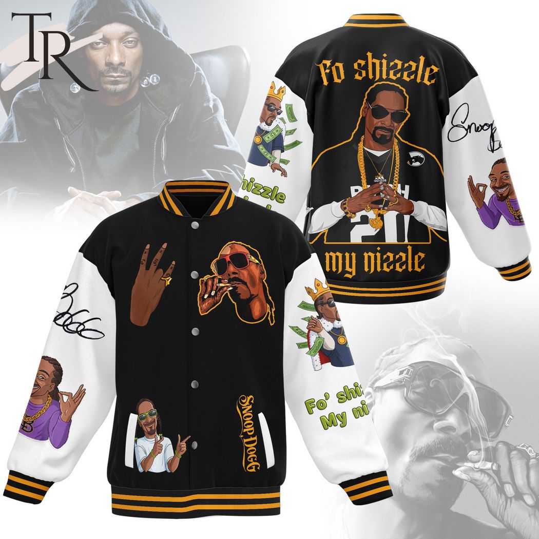Snoop Dogg Fo’ Shizzle My Nizzle Baseball Jacket The Snoop Dogg Fo’ Shizzle My Nizzle Baseball Jacket is your ideal choice of a stylish and fashion forward statement gear. This cool jacket features an injected embroidered Snoop Dogg logo, along with a ‘Fo’ Shizzle My Nizzle’ themed back print. It is crafted with premium cotton-poly...