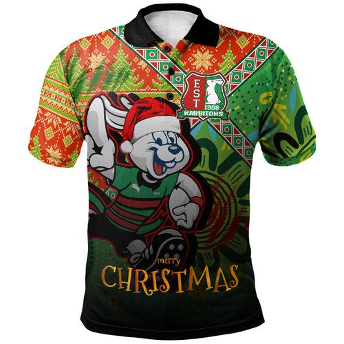 South Sydney Rabbitohs Gradient Polo Shirt – Custom Merry Christmas Rabbitohs Indigenous Pride Polo Shirt