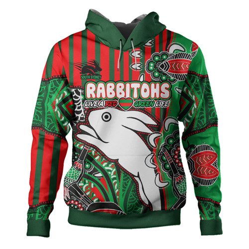 South Sydney Rabbitohs Hoodie – Indigenous Dreaming Souths “Live A Red Green Life” Hoodie