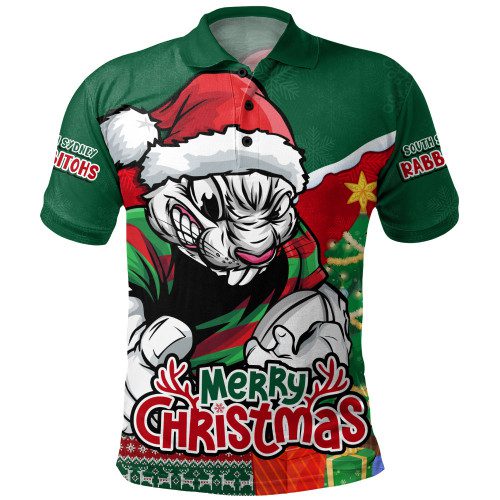 South Sydney Rabbitohs Polo Shirt Santa Scoring Touchdown On Christmas Game Day
