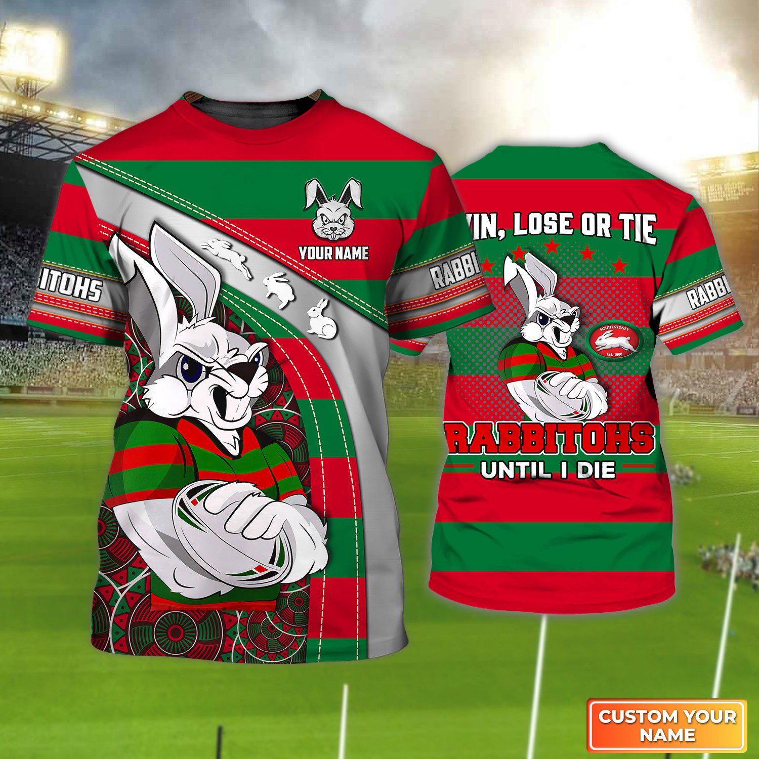 South Sydney Rabbitohs T-Shirt Win, Lose Or Tie Rabbitohs Until I Die Personalized Name 3D Tshirt Gift For Nrl Fan Tad 04