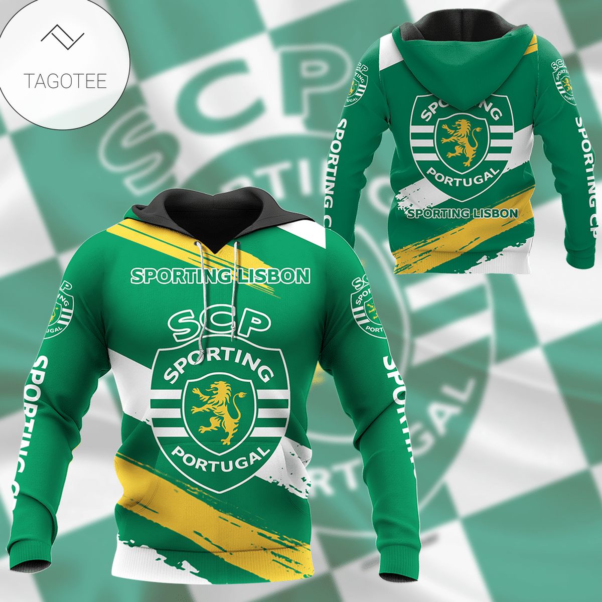 Sporting CP Green Pullover Hoodie Product Features Along with its Sporting CP graphics, this cozy pullover hoodie features super-soft midweight material. Material: 95% polyester + 5% spandex. The fabric is durable and resistant to wrinkles, shrinking and mildew. Hood with drawstrings. Long sleeve. Front pouch pocket. Midweight hoodie suitable for moderate temperatures. Features a specialty...