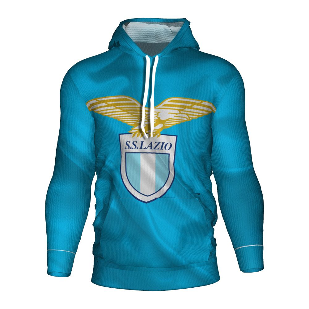 SS Lazio Blue Pullover Hoodie Product Features Along with its SS Lazio graphics, this cozy pullover hoodie features super-soft midweight material. Material: 95% polyester + 5% spandex. The fabric is durable and resistant to wrinkles, shrinking and mildew. Hood with drawstrings. Long sleeve. Front pouch pocket. Midweight hoodie suitable for moderate temperatures. Features a specialty...