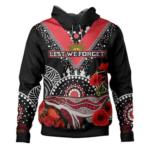 St. George Illawarra Dragons Anzac Custom Hoodie – Aboriginal Inspired Whale Anzac Poppies Hoodie