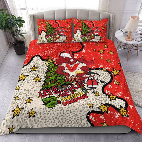 St. George Illawarra Dragons Christmas Custom Bedding Set – Let’s Get Lit Chrisse Pressie Bedding Set