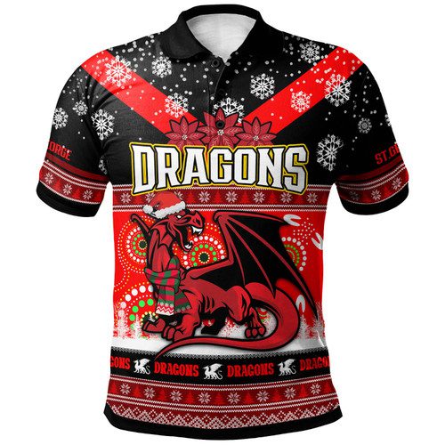 St. George Illawarra Dragons Christmas Polo Shirt – Custom Dragon Ugly Christmas And Aboriginal Inspired Patterns Polo Shirt