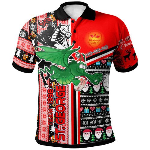 St. George Illawarra Dragons Christmas Polo Shirt – Custom Dragons Xmas Green Wyvern With Snowflakes And Ball Polo Shirt