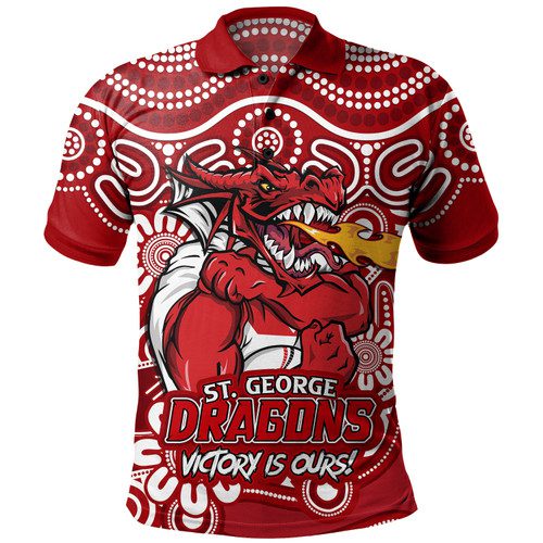 St. George Illawarra Dragons Polo Shirt Aboriginal Inspired Tough Fan Rugby For Life Ver 2.0