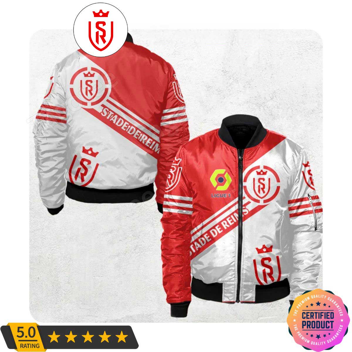 Stade de Reims Ligue 1 Red White Bomber Jacket Product Features