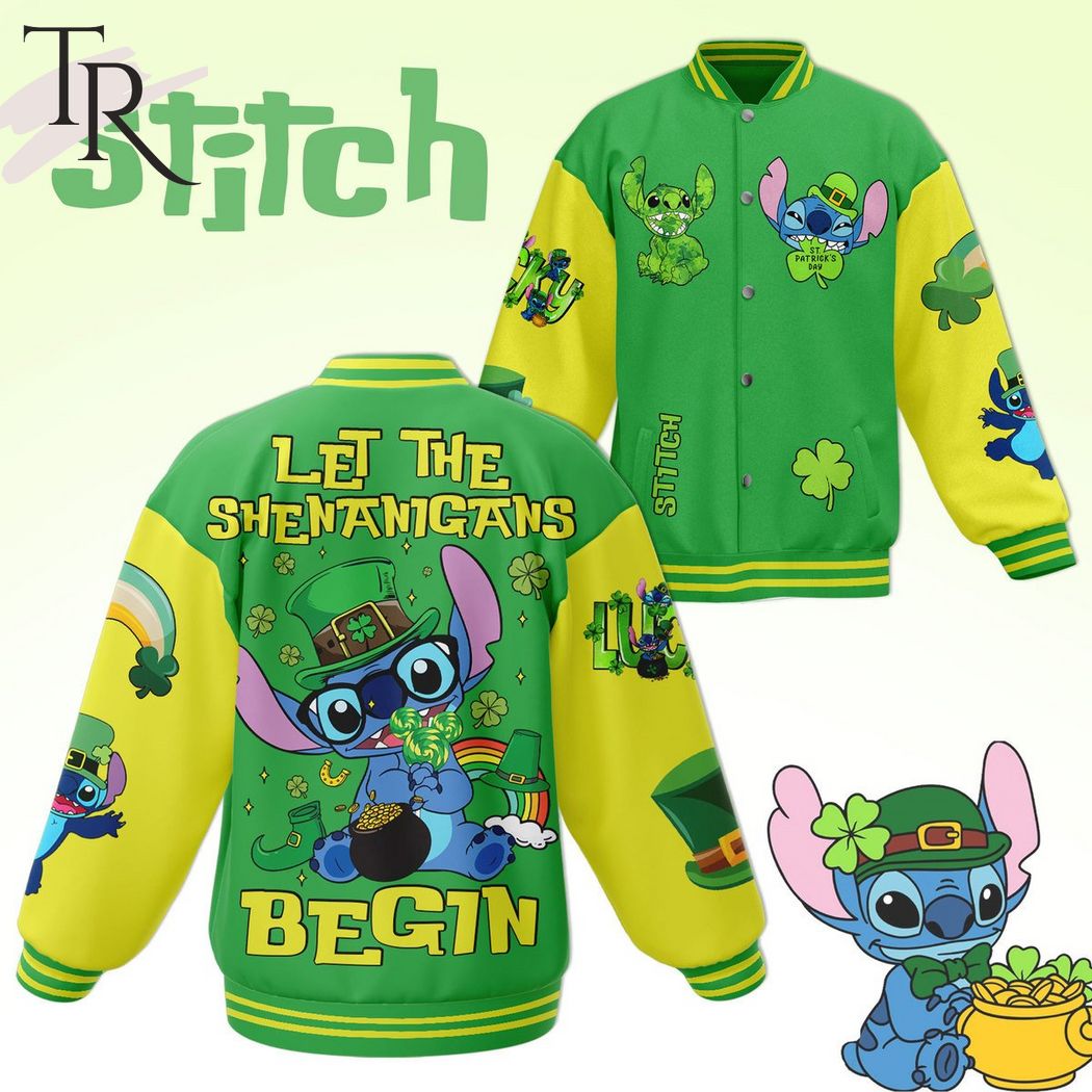 Stitch Let the Shenanigans Begin St. Patrick’s Day Baseball Jacket