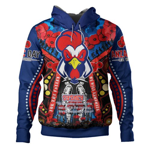 Sydney Roosters Anzac Watercolour Custom Hoodie – Remembrance Sydney Anzac Day With Poppy Flower