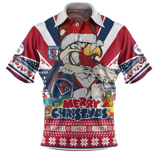 Sydney Roosters Christmas Custom Polo Shirt – Easts Rooster Santa Aussie Big Things Polo Shirt