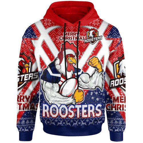 Sydney Roosters Christmas Hoodie – Custom Sydney Roosters Merry Christmas With Snowflake Pattern Hoodie