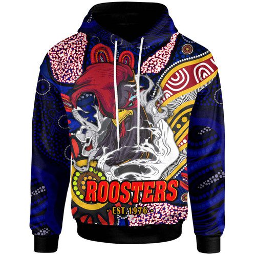 Sydney Roosters Hoodie – Custom Angry Rooster with Aboriginal Inspired Indigenous Dot Painting Style