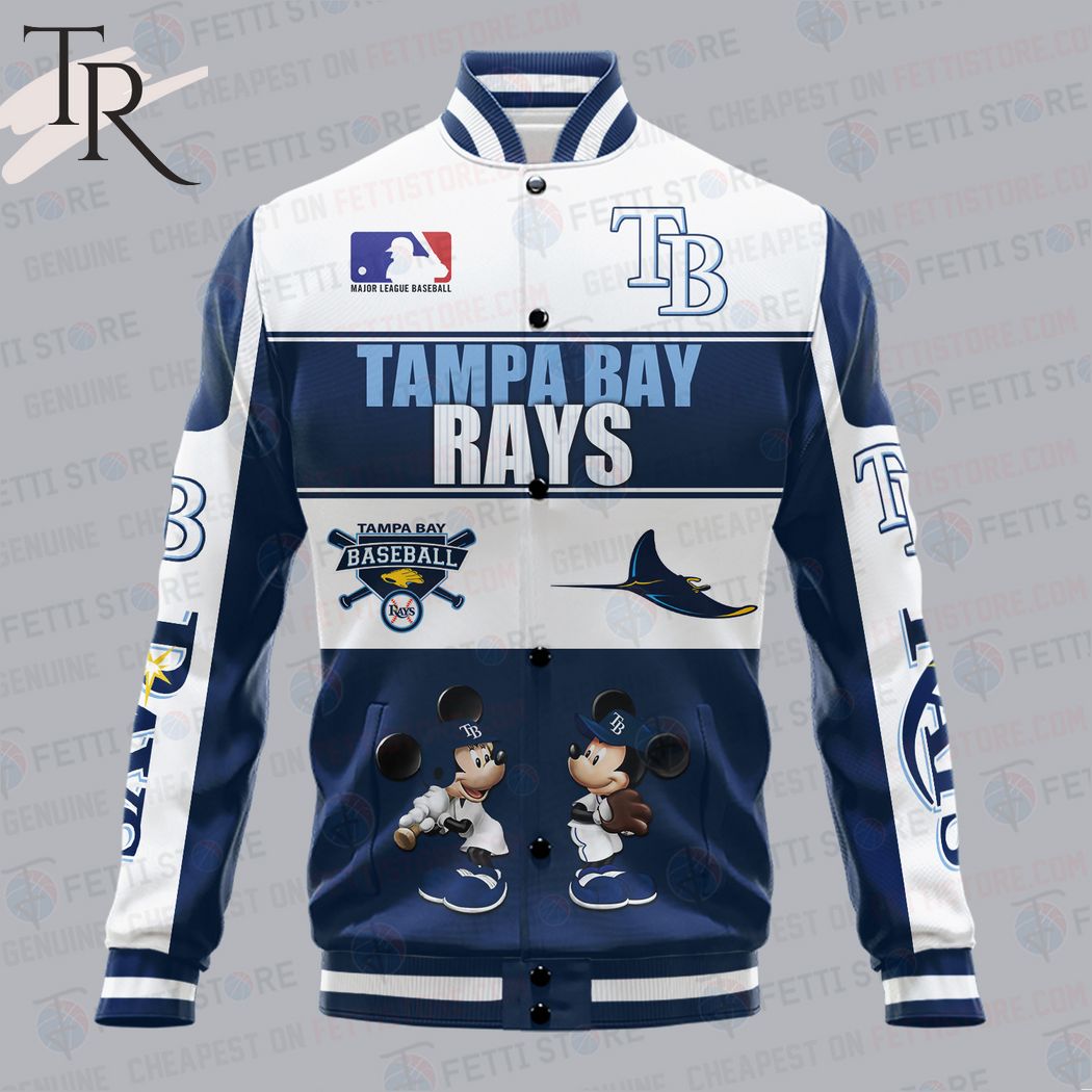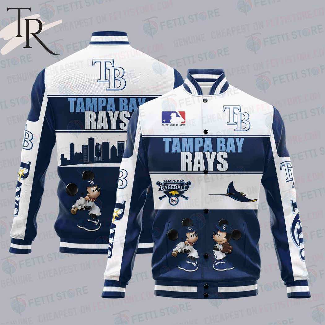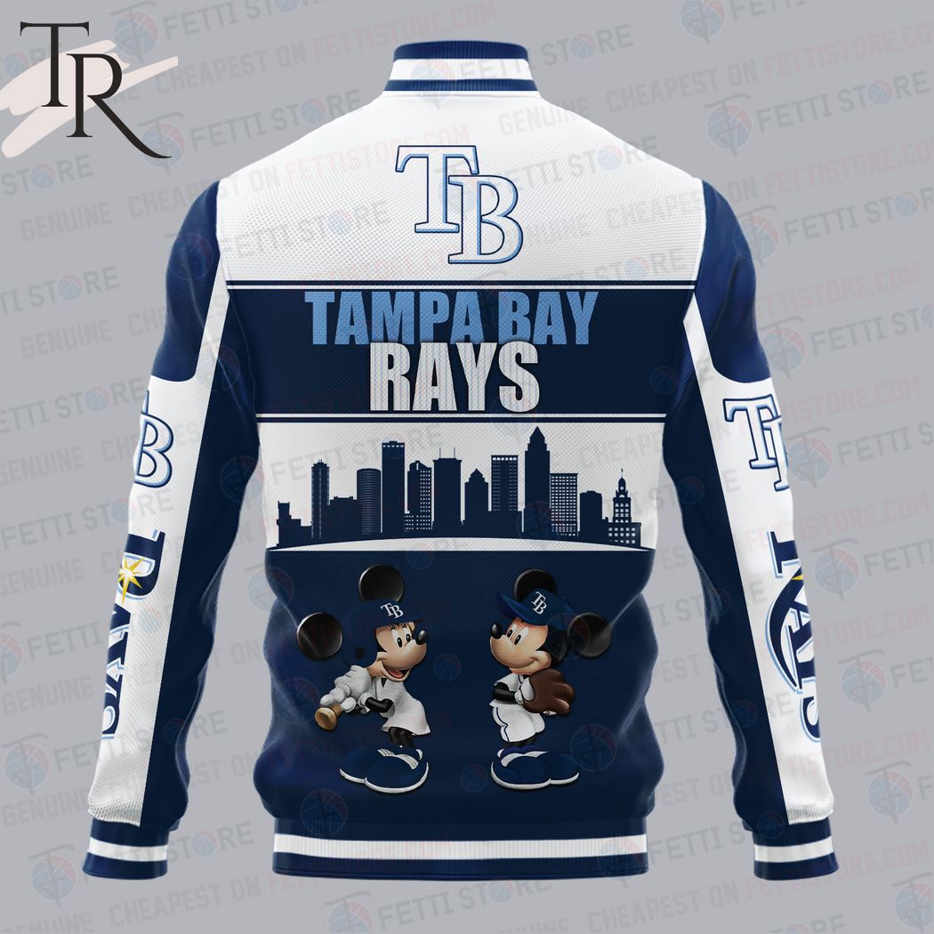 Tampa Bay Rays City And Logo Pattern Print Varsity Jacket The Tampa Bay Rays City and Logo Pattern Print Varsity Jacket is perfect for hardcore Rays fans. This stylish, full-zippered jacket features iconic team colors, premium lightweight comfort, ribbed cuffs and bottom hem, and vibrant team graphics. The high quality sublimation print sets off the...