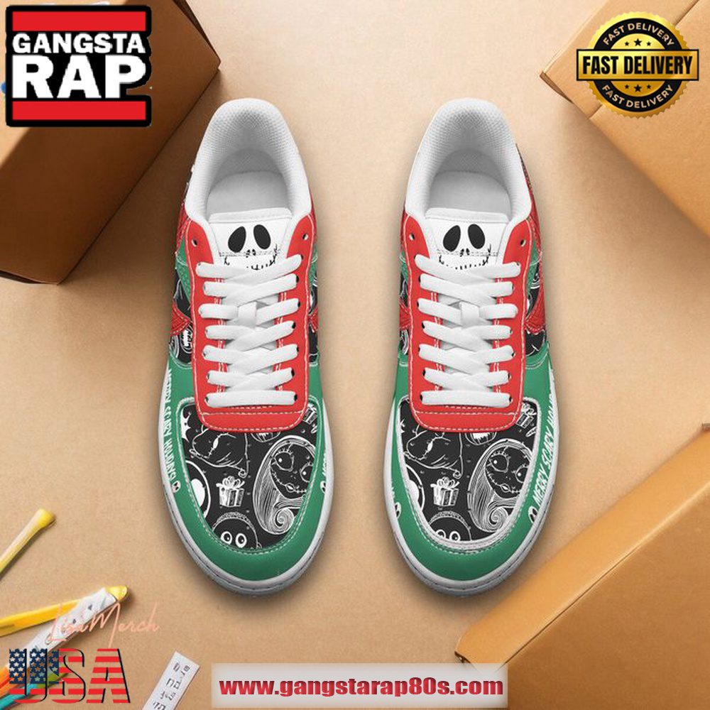 Introducing the TNBC Merry Scary Holidays Christmas Air Force 1 Running Sneakers Shoes ? a perfect blend of festivity and fashion, designed specifically for those looking to add a touch of holiday spirit to their athletic wardrobe. These unique running sneakers are more than just a pair of shoes; they are a celebration of the holiday season with a twist of eerie charm, making them a standout choice for this year’s Christmas footwear trends.