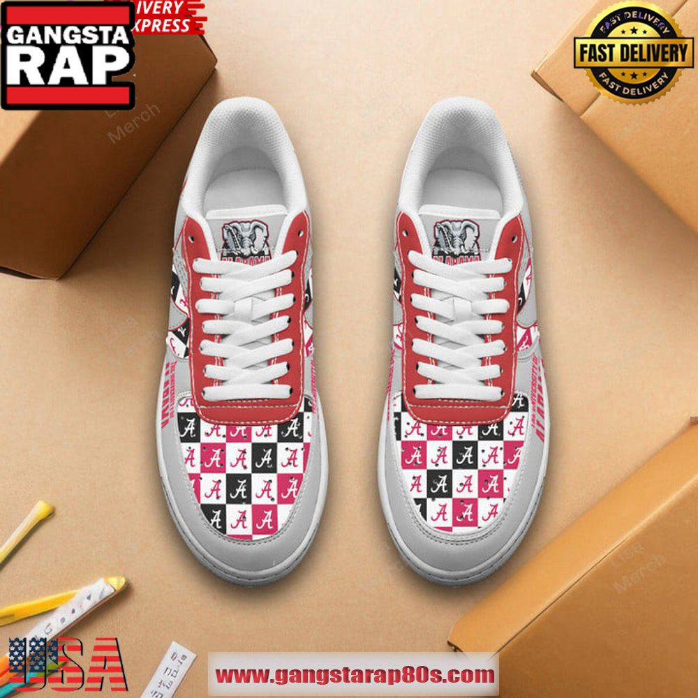 Introducing the sleek and stylish University of Alabama Roll Tide Air Force 1 Sneakers, a must-have for every passionate Crimson Tide fan. These Nike Air Force 1 shoes are not just footwear; they are a celebration of tradition and spirit, perfectly blending iconic style with the fervor of college football.