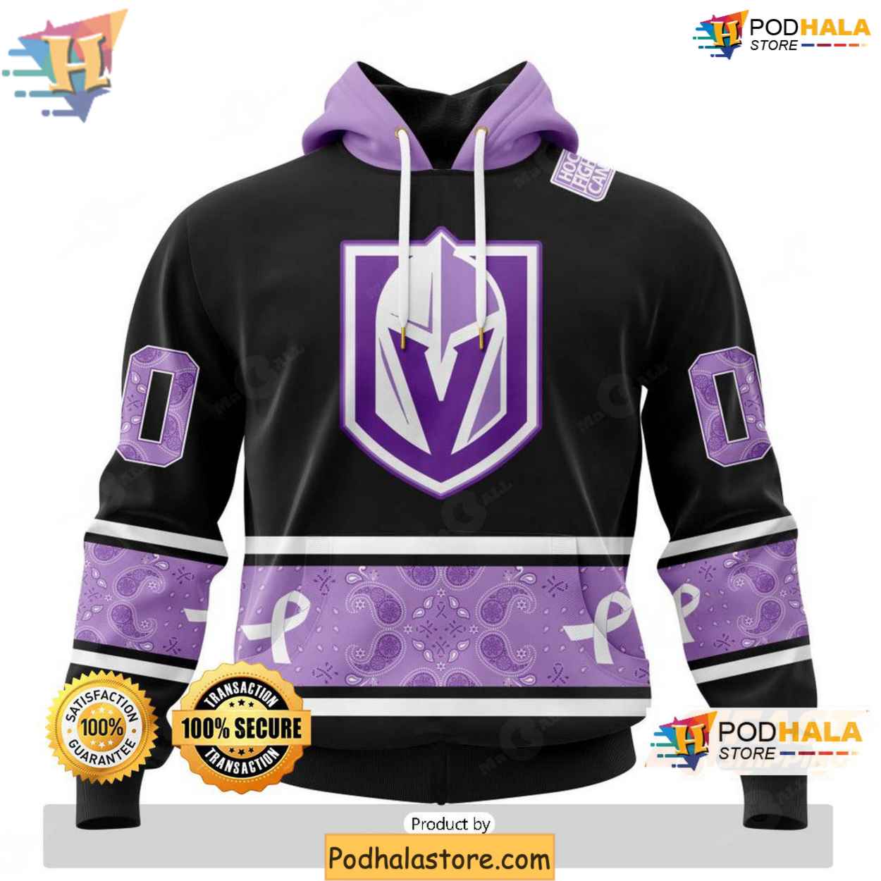 Vegas Golden Knights 3D Hoodie, Hockey Fights Lavender Cancer Purple Black Apparel