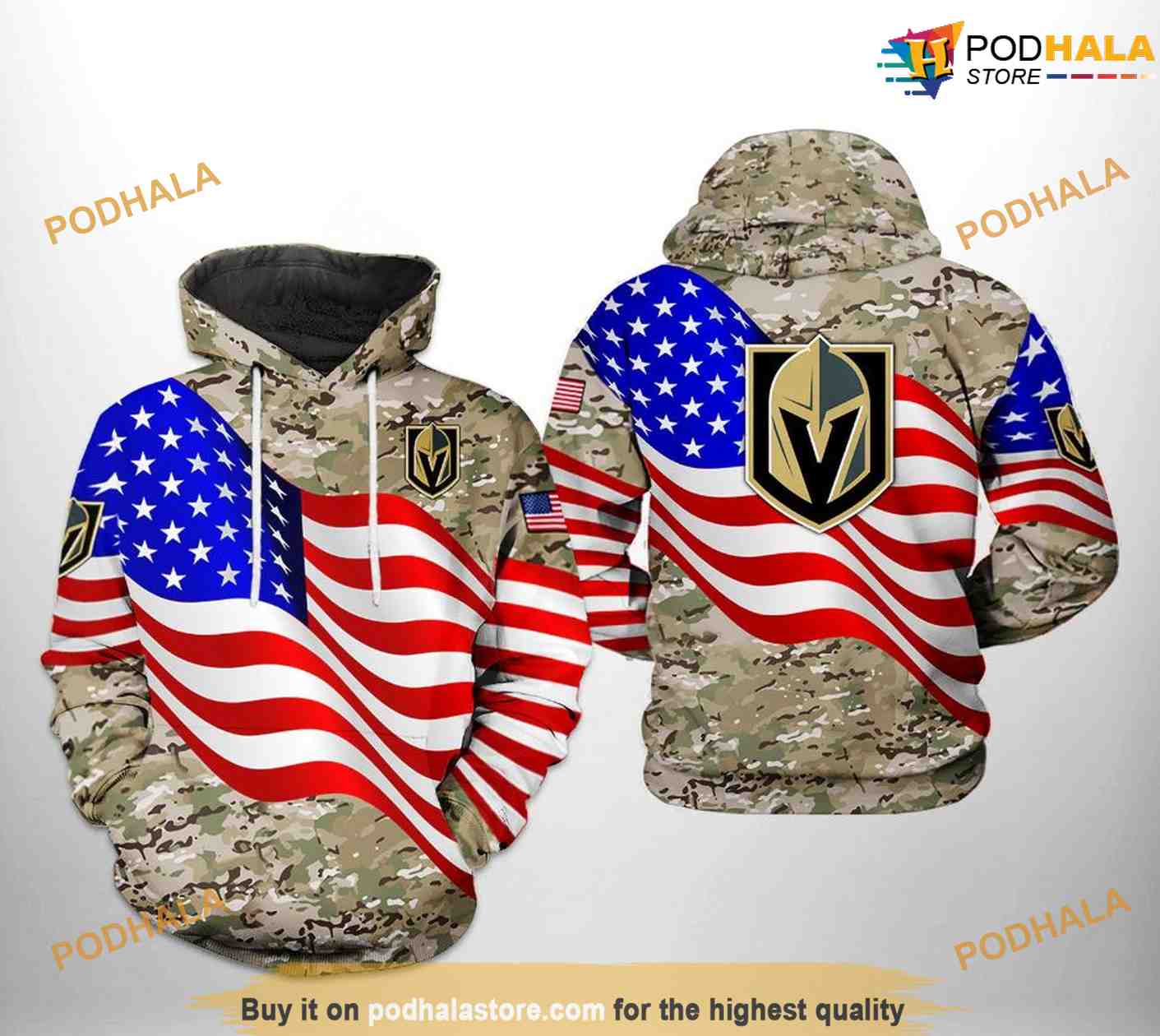 Vegas Golden Knights NHL US FLag Camo Veteran NHL Hoodie 3D