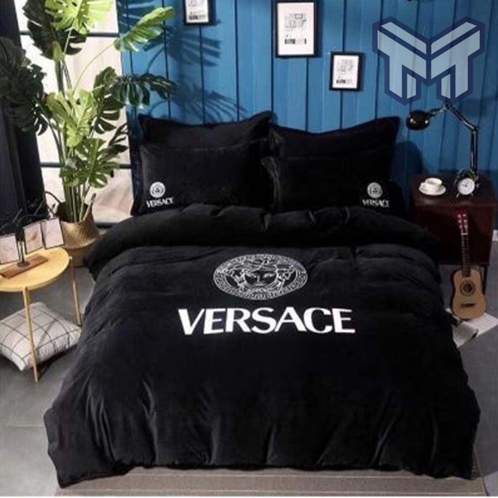 Versace Black Fashion Logo Luxury Brand Bedding Set Home Decor, The Best Quantity and Service: The Hot Versace Black Fashion Logo Luxury Brand Bedding Set is a stunning addition to any bedroom, exuding a sense of elegance and luxury. Crafted from high-quality materials, this?bedding set?is designed to provide ultimate comfort and durability. The set includes...