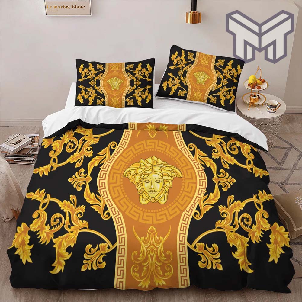 Elevate your bedroom decor with the exquisite Versace Gold Luxury Brand Logo High-End Bedding Set LV Home Decor. This premium bedding set boasts a luxurious design featuring iconic logos and a trendy gold color scheme that exudes opulence and sophistication. Crafted from high-quality materials, this bedding set promises to provide unparalleled comfort and durability for a cozy night’s sleep every time. With its unique blend of style and functionality, the Versace Gold Luxury Brand Logo High-End Bedding Set LV Home Decor is perfect for those who seek nothing but the best in their home decor. Experience ultimate luxury today!