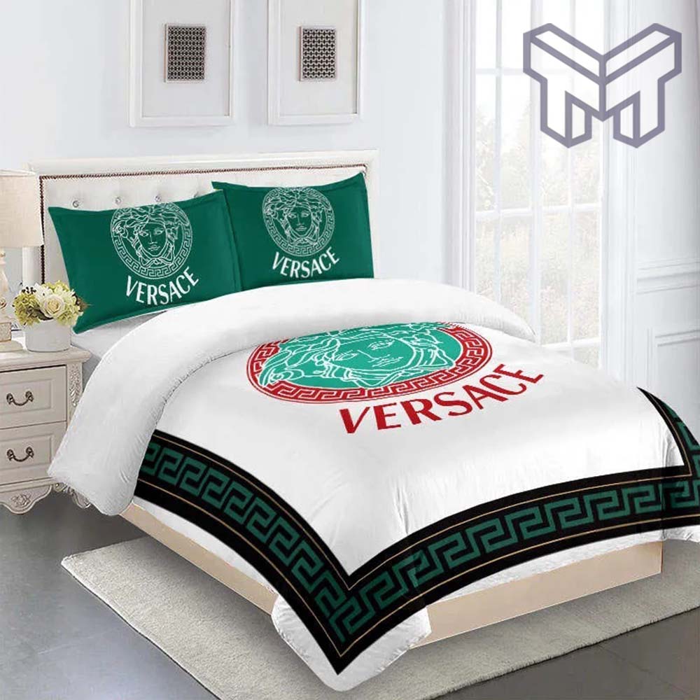 Versace Green Medusa White Luxury Brand Bedding Set Bedspread Duvet Cover Set Home Decor, The Best Quantity and Service: