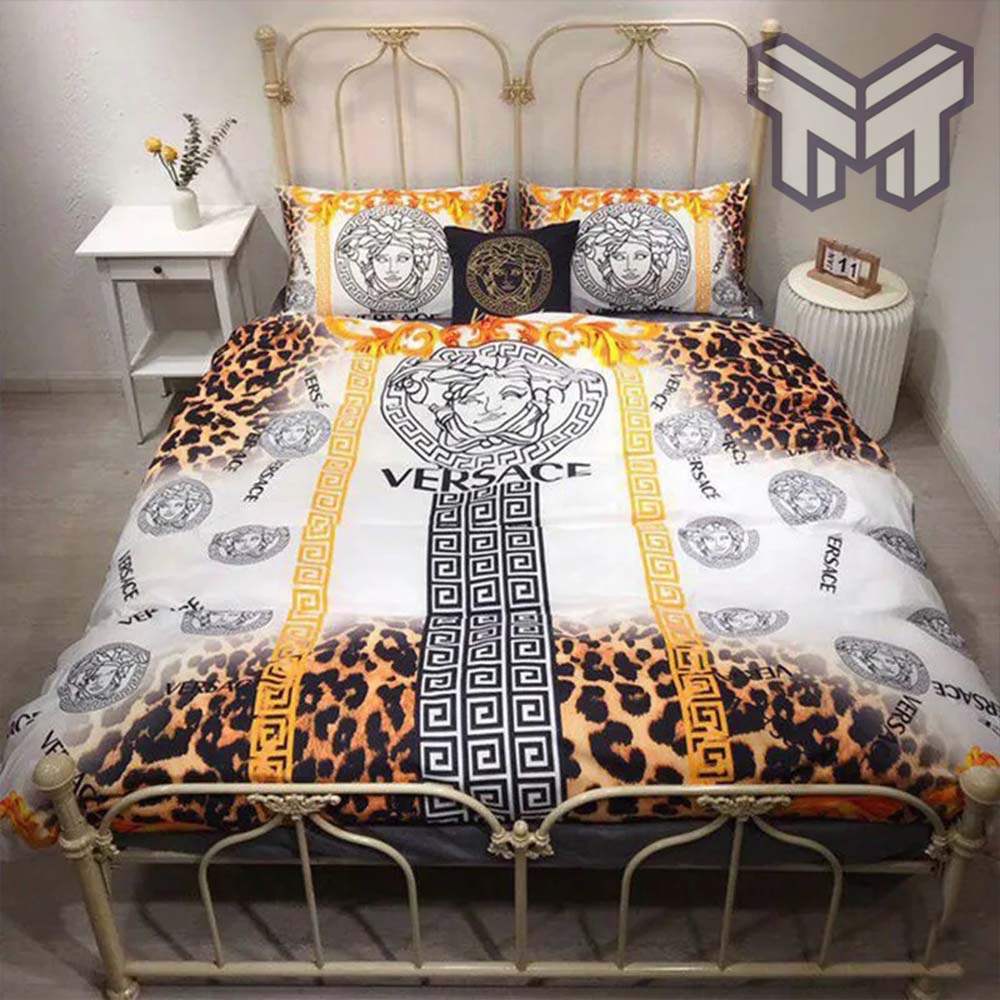 Versace Logo Leopard Luxury Brand Bedding Set Bedspread Duvet Cover Set Home Decor, The Best Quantity and Service: