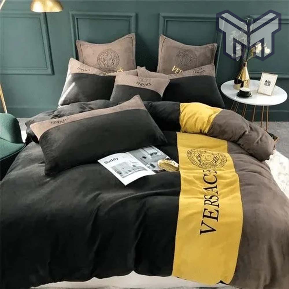 Versace Medusa Yellow Brown Black Luxury Brand Premium Bedding Set Bedspread Duvet Cover Set Home Decor, The Best Quantity and Service: The Hot Versace Medusa Yellow Brown Black Luxury Brand Premium Bedding Set Bedspread Duvet Cover Set Home Decor is a masterful expression of elegance and opulence. From the house of Versace, celebrated for its...
