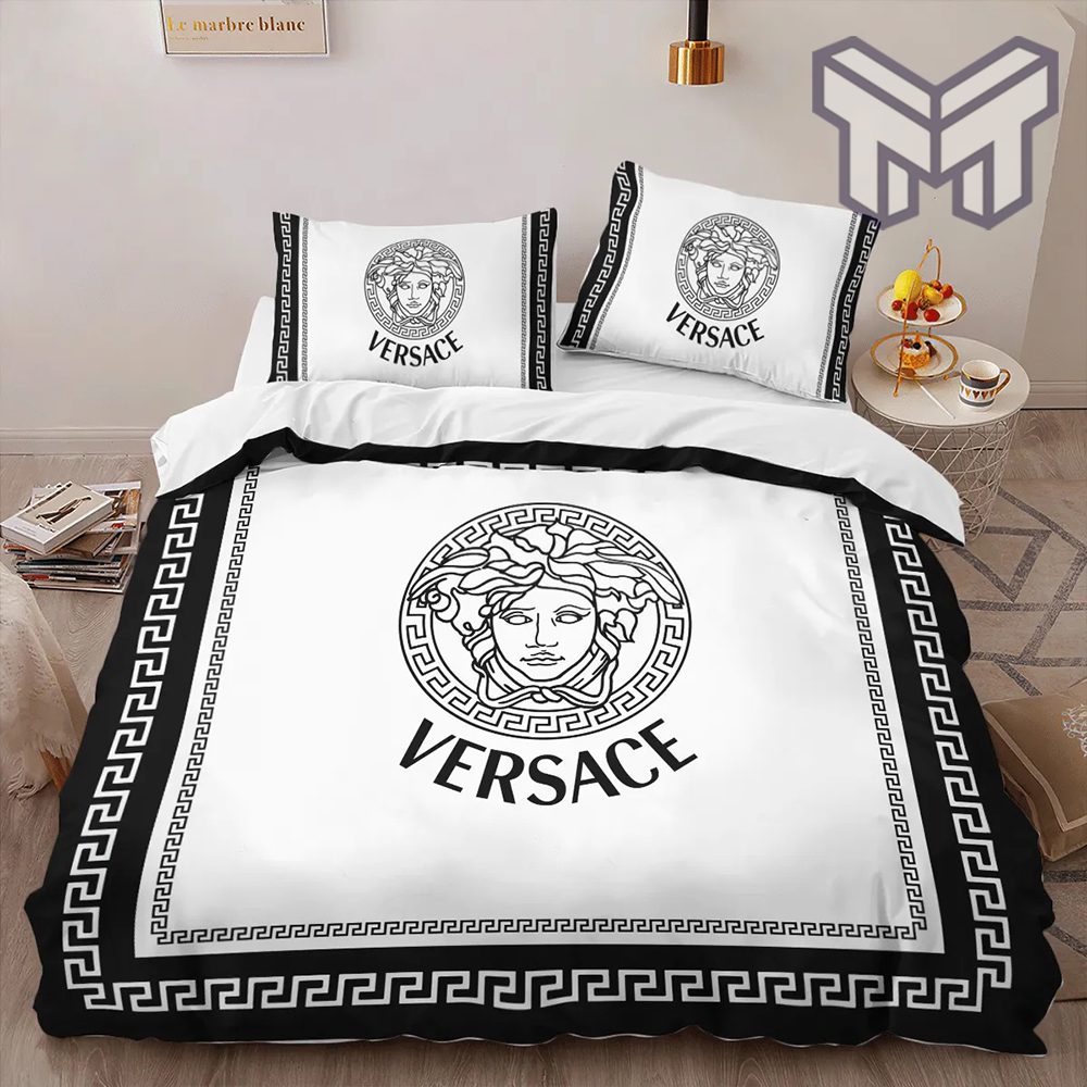 Experience the epitome of luxury with our Versace White Black Limited Edition Luxury Brand High-End Bedding Set LV Home Decor. This exquisite bedding set is crafted to perfection using only the finest materials, ensuring a comfortable and restful sleep every night.Designed by the iconic fashion house Versace, this limited edition masterpiece features an elegant white and black color palette adorned with their signature Medusa head emblem. The intricate detailing on each piece showcases exceptional craftsmanship that exudes sophistication and opulence.This high-end bedding set includes a duvet cover, flat sheet, fitted sheet, pillowcases, and shams all made from premium quality cotton sateen for a soft feel against your skin. The luxurious finish adds an extra touch of elegance to any bedroom decor.Make a statement in your home with this one-of-a-kind Versace White Black Limited Edition Luxury Brand High-End Bedding Set LV Home Decor. Elevate your sleeping experience to new heights today!