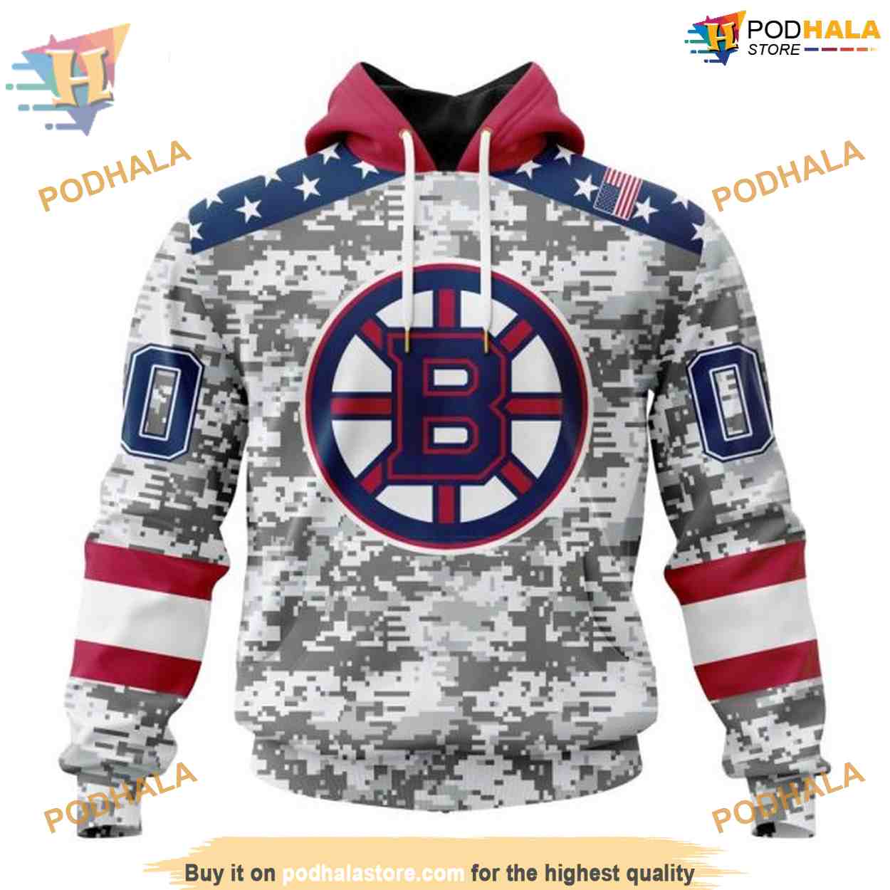 Veterans Day Special Camo NHL Boston Bruins Hoodie 3D, Patriotic Merch