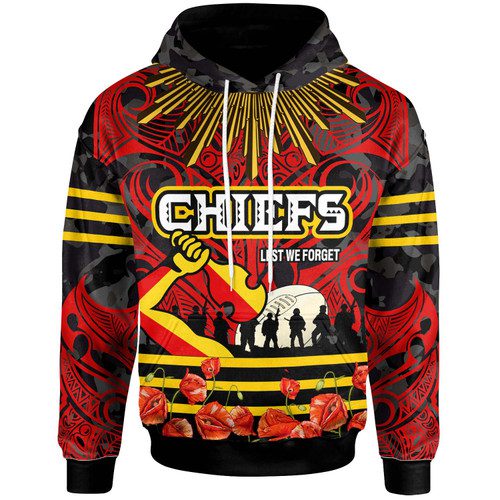 Waikato Chiefs Rugby Hoodie – Anzac Day Waikato Chiefs Maori Pattern with Poppy Flowers Hoodie