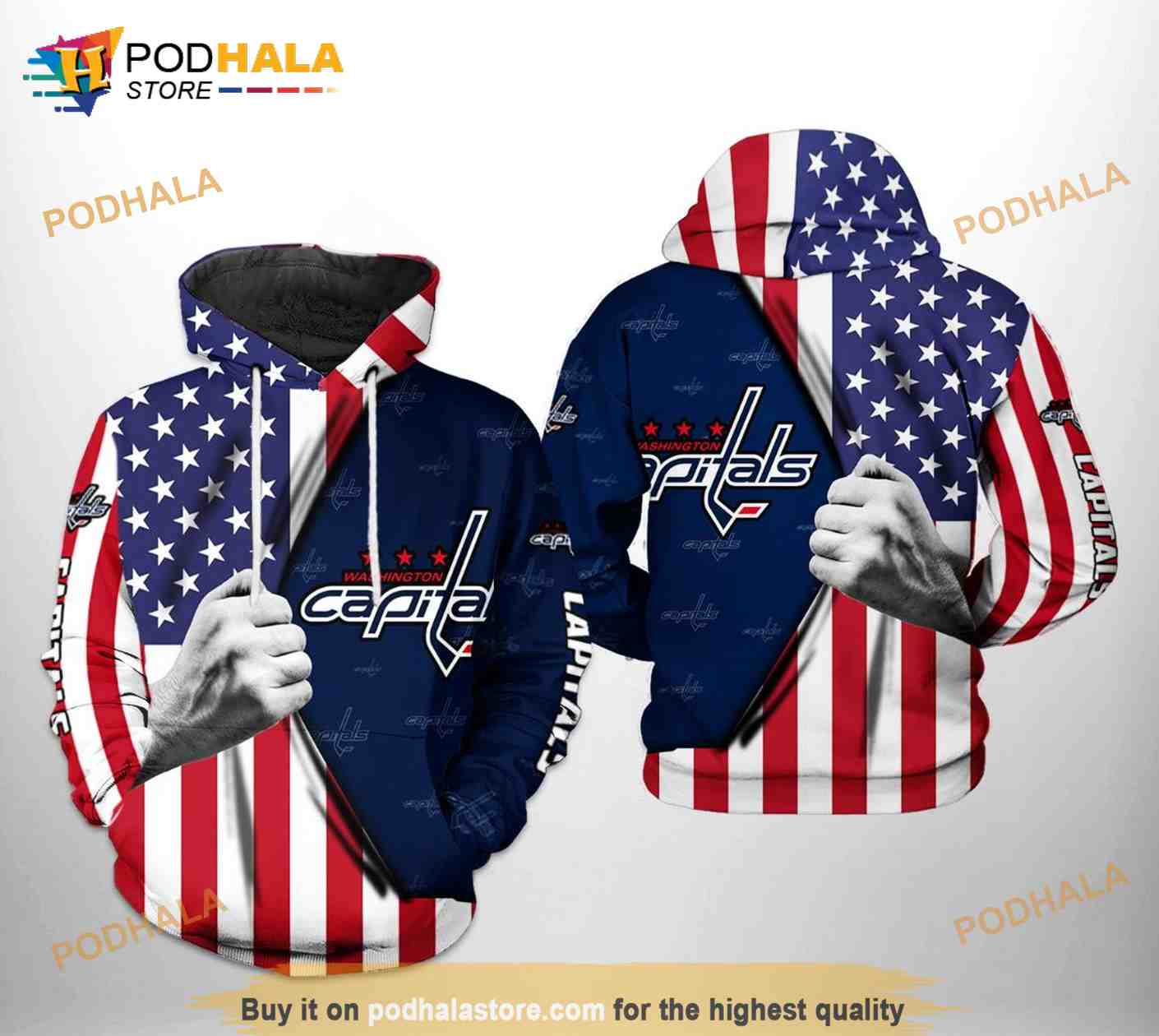 Washington Capitals NHL US FLag All Over Print 3D Hoodie