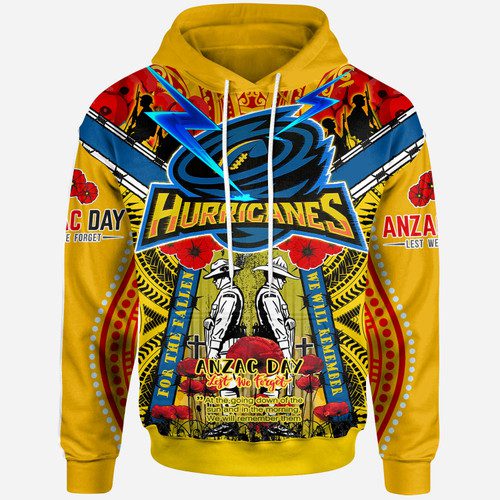 Wellington Hurricanes Anzac Day Custom Hoodie – Remembrance Hurricanes With Maori Patterns And Poppy Flowers