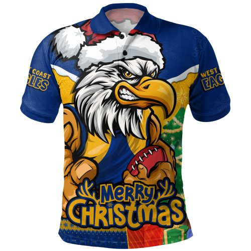 West Coast Eagles Polo Shirt Santa Scoring Touchdown On Christmas Game Day