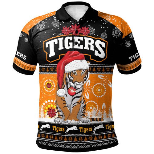 Wests Tigers Christmas Polo Shirt – Custom Wests Tigers Ugly Christmas And Aboriginal Inspired Patterns Polo Shirt