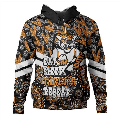 Wests Tigers Hoodie – Tropical Patterns And Dot Painting Eat Sleep Rugby Repeat