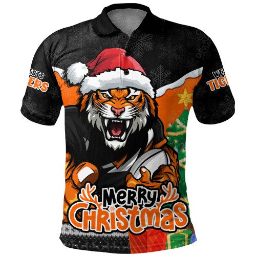 Wests Tigers Polo Shirt Santa Scoring Touchdown On Christmas Game Day