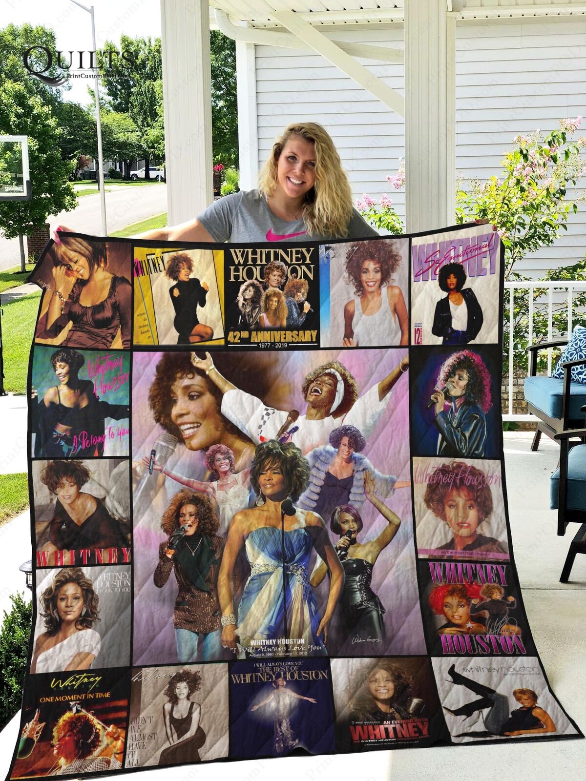 Made of high-grade materials, our Whitney Houston quilt blankets are light enough to use on their own on summer nights, and add an extra layer of coziness when things get chilly.