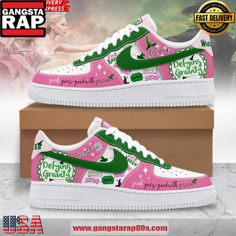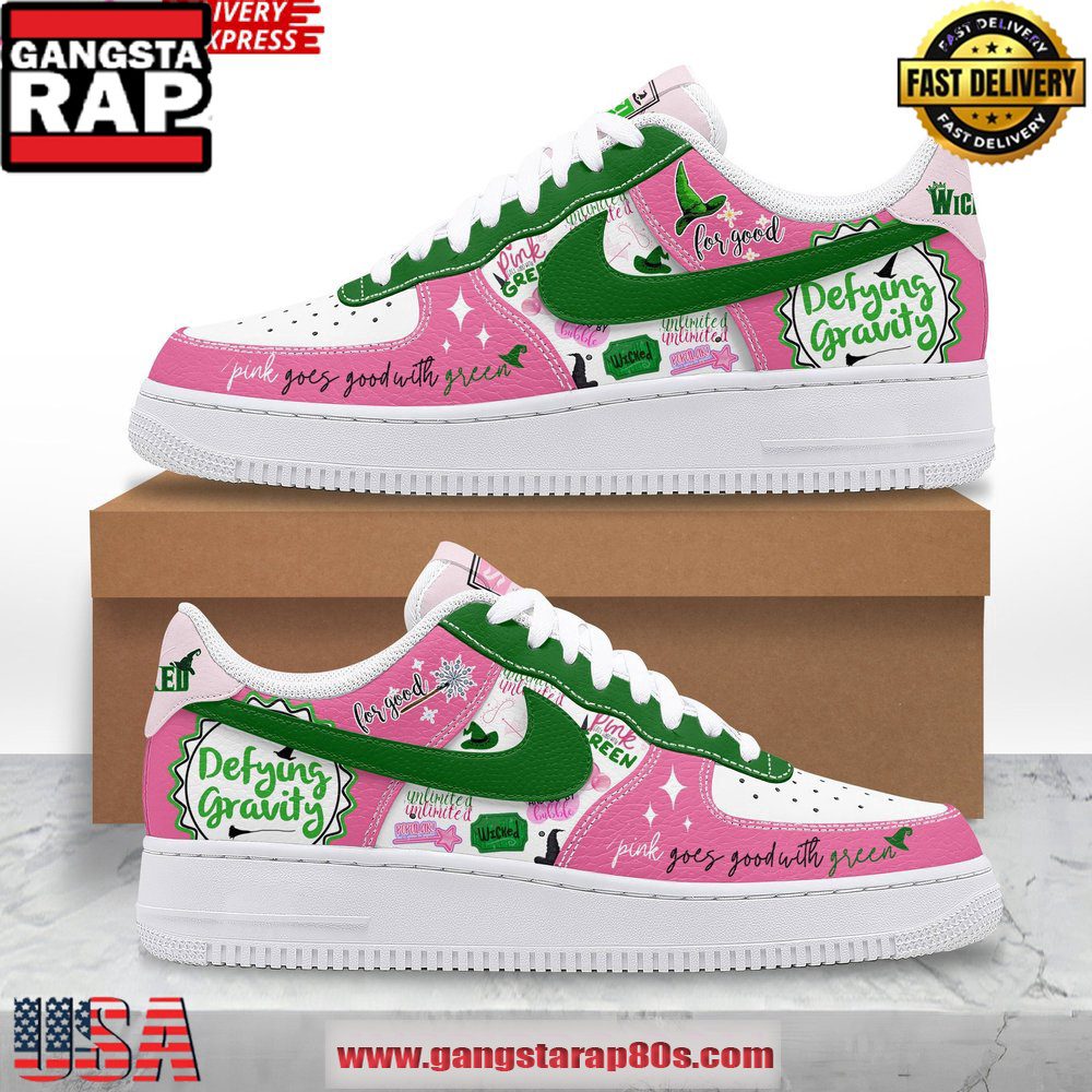 Embrace this season’s trend of blending functionality with flair and set yourself apart with the Wicked Defying Gravity Limited Edition Air Force 1 Running Sneakers. Elevate your sneaker game while making an unmistakable fashion statement. Available now for a limited time only, these sneakers are not just shoes?they’re a part of a legacy.