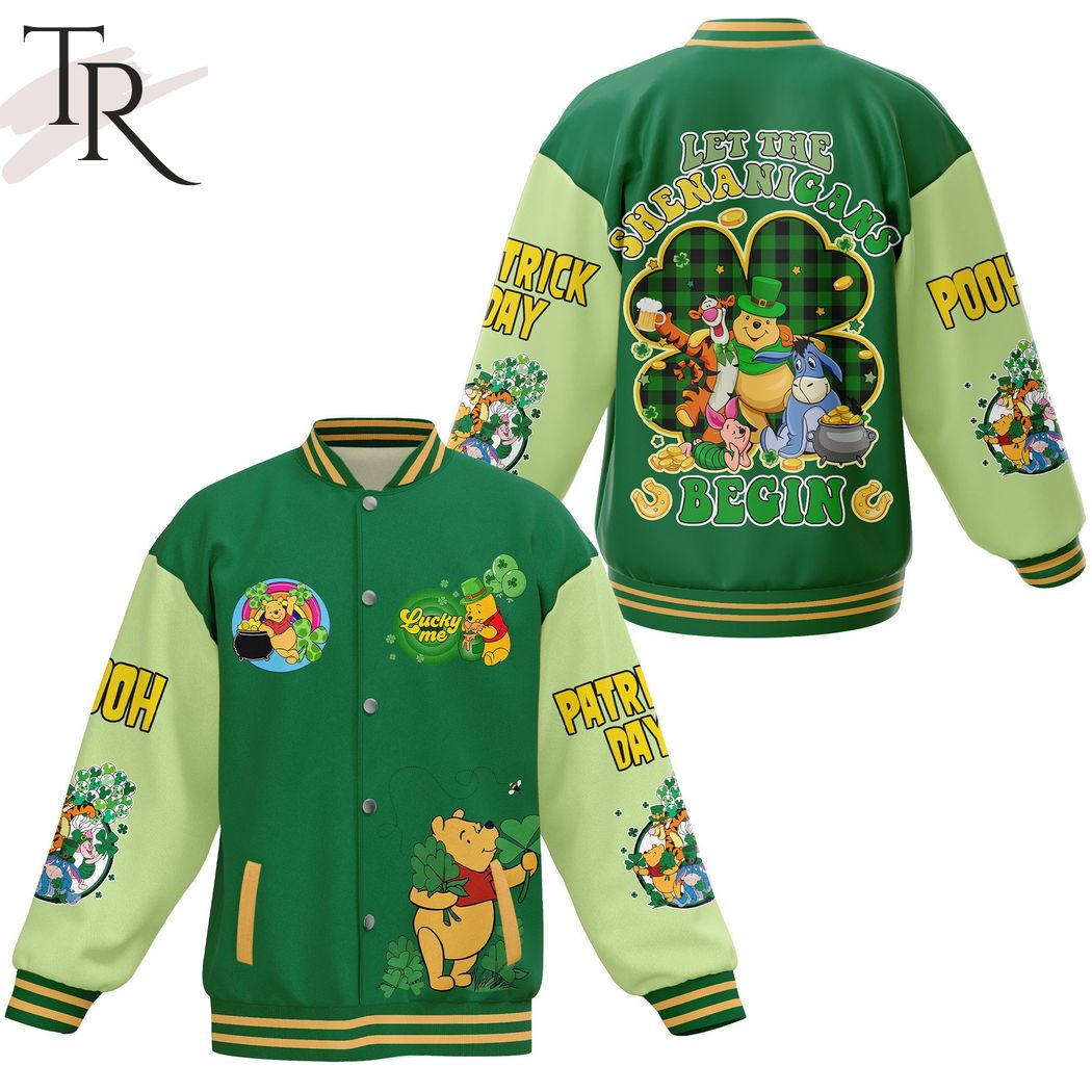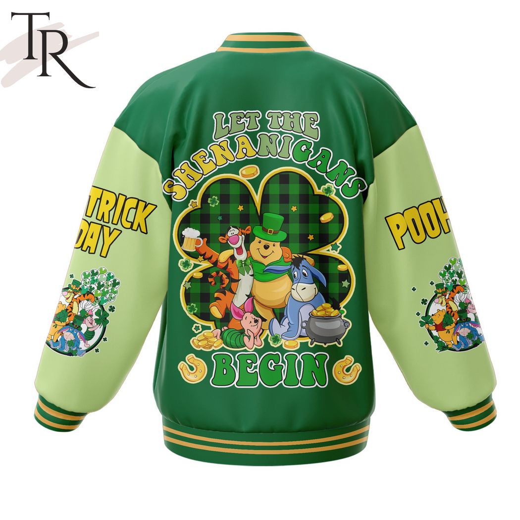 Winnie-the-Pooh Let The Shenanigans Begin Happy St Patrick’s Day Baseball Jacket