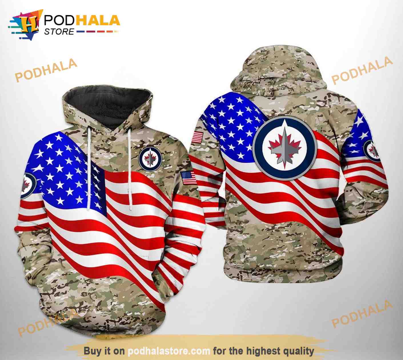 Winnipeg Jets NHL US FLag Camo Veteran All Over Print 3D Hoodie