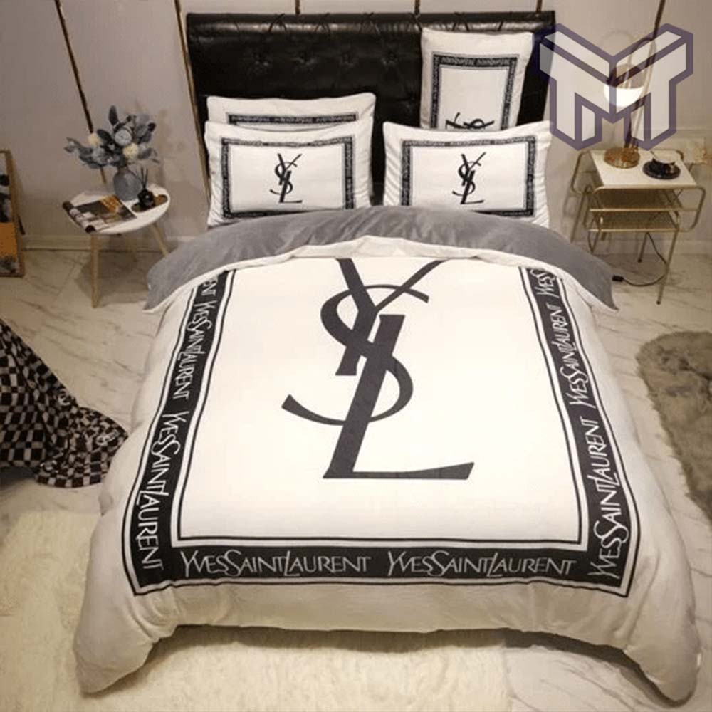 Yves Saint Laurent Logo White New Fashion Luxury Brand Bedding Set Bedspread Duvet Cover Set, The Best Quantity and Service: